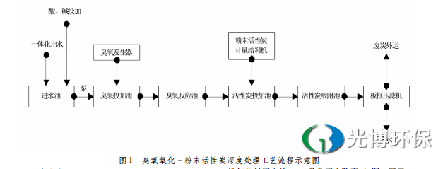 实验设备、材料及检测方法实验设备采用臭氧发生器,型号SDK-A-500,臭氧产量为50g/h,臭氧投加浓度0~300mg/L,采用200目优质粉末活性炭,物化性质为:表面积1050~1200m2/g,碘值1000~1150mg/g,水分含量5%~8%。采用禹州迪博牌小型板框压滤机,型号BAM4/450-30U,过滤面积4m2,过滤压力0.6MPa。水质检测指标主要有COD、pH值、色度等,采用TR-208B便携式COD测定仪(深圳同奥科技),HI98103笔式酸度计(青岛路博伟业)。色度的测定方法采用稀释法。